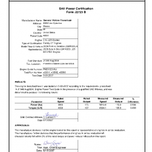 This product includes information on the manufacturer, engine, application, testing location, certified maximum horsepower, certified maximum torque along with the certified curves of horsepower and torque over a wide range of engine RPM speeds.