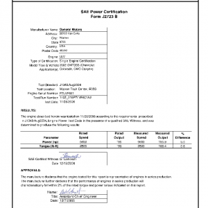 This product includes information on the manufacturer, engine, application, testing location, certified maximum horsepower, certified maximum torque along with the certified curves of horsepower and torque over a wide range of engine RPM speeds.