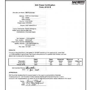 J1349 Certified Power Engine Data for GM LGD as used in 2009 LGD Chevrolet Impala – Level 1