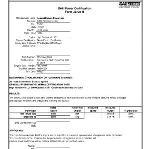 J1349 Certified Power Engine Data for GM LLT as used in 2010 Cadillac CTS Wagon – Level 1