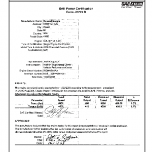 J1349 Certified Power Engine Data for GM L99 as used in 2010 Chevrolet Camaro – Level 1