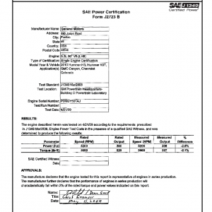 This product includes information on the manufacturer, engine, application, testing location, certified maximum horsepower, certified maximum torque along with the certified curves of horsepower and torque over a wide range of engine RPM speeds.