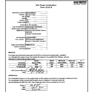J1349 Certified Power Engine Data for GM LMF as used in 2010 Full Size Van, Chevrolet Express/GMC Savana w/Base Exhaust System – Level 1