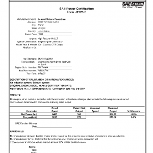 J1349 Certified Power Engine Data for GM LLT as used in 2011 Cadillac CTS Coupe – Level 1