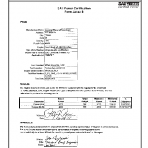 J1349 Certified Power Engine Data for GM LSA Gasoline as used in 2012 Chevrolet Camaro ZL1 – Level 1