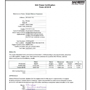 This product includes information on the manufacturer, engine, application, testing location, certified maximum horsepower, certified maximum torque along with the certified curves of horsepower and torque over a wide range of engine RPM speeds.