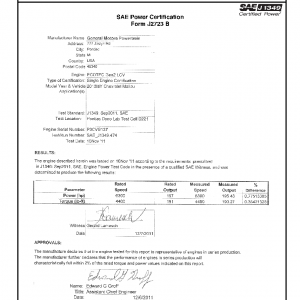 J1349 Certified Power Engine Data for GM LCV as used in 2013MY Chevrolet Malibu – Level 1