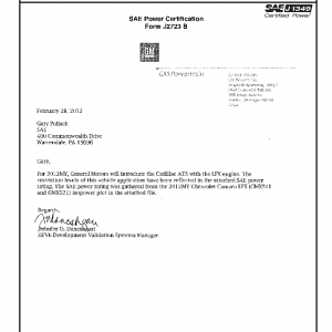 J1349 Certified Power Engine Data for GM LFX as used in 2013 Cadillac ATS (ISOPOWER adjusted based on 2012 Chevrolet Camaro LFX) – Level 1