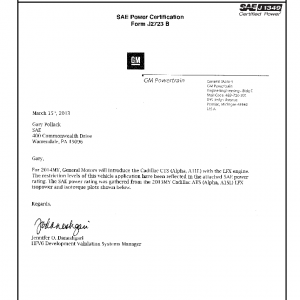 J1349 Certified Power Engine Data for GM LFX as used in 2014 Cadillac CTS (Alpha A1LL) ISOPOWER adjusted based on 2013 Cadillac ATS – Level 1