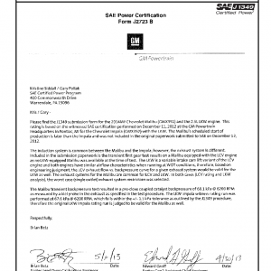 Certified Power Engine Data for GM LKW as used in 2014MY Chevrolet Malibu (based on 2014MY Chevrolet Impala) – Level 1
