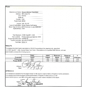 J1349 Certified Power Engine Data for GM LFR as used in 2015 Chevrolet Impala CNG – Level 1