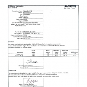 J1349 Certified Power Engine Data for Adam Opel AG U18YHY as used in 2016.5 Carline, Chevy Malibu (E2) – Level 1