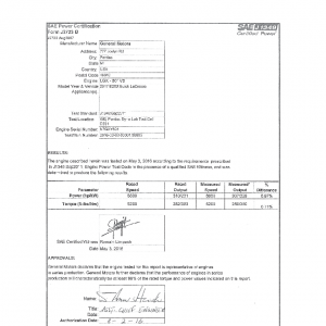 This product includes information on the manufacturer, engine, application, testing location, certified maximum horsepower, certified maximum torque along with the certified curves of horsepower and torque over a wide range of engine RPM speeds.