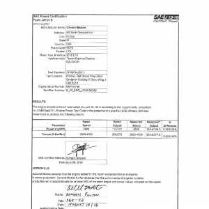 J1349 Certified Power Engine data for GM as used in 2018 Chevrolet Equinox Turbo/Terrain/Captiva – Level 1
