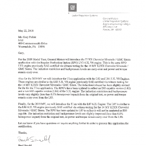 J1349 Certified Power Engine Data for GM LV3 as used in 2019 Chevrolet Silverado/GMC Sierra Light Duty – 87 Octane PON – Level 1