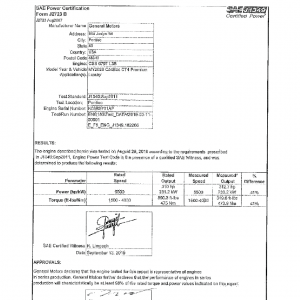 J1349 Certified Power Engine Data for GM L3B as used in the 2020 Cadillac CT4 Premium Luxury – Level 1