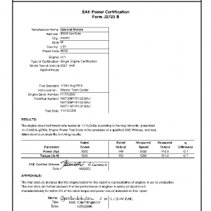 This product includes information on the manufacturer, engine, application, testing location, certified maximum horsepower, certified maximum torque along with the certified curves of horsepower and torque over a wide range of engine RPM speeds.