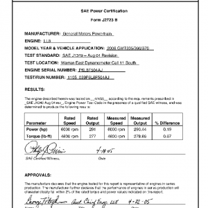 J1349 Certified Power Engine Data for GM LL8 as used in 2006 Chevrolet Envoy/Trailblazer Level 1