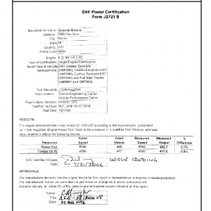 J1349 Certified Power Engine Data for GM L92 as used in 2007 Cadilac Escalade ESV, Cadilac Escalade EXT, Full Size Trucks – Level 2