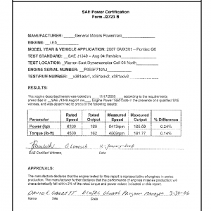 J1349 Certified Power Engine Data for GM LE5 as used in 2007 Pontiac G6 Level 2