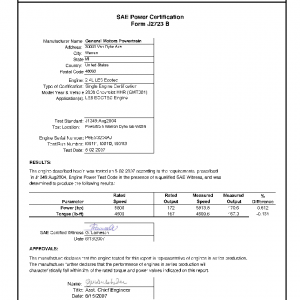 This product includes information on the manufacturer, engine, applications, testing location, certified maximum horsepower, certified maximum torque along with the certified curves of horsepower and torque over a wide range of engine RPM speeds.