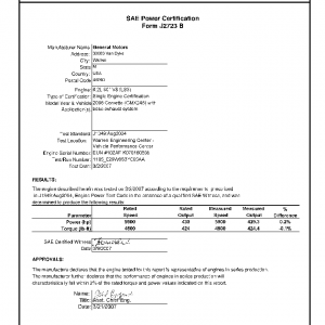 J1349 Certified Power Engine Data for GM LS3 as used in 2008 Corvette with Base Exhaust System – Level 2