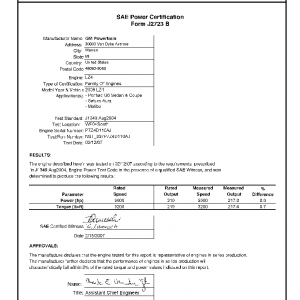 J1349 Certified Power Engine Data for GM LZ4 as used in 2008 Pontiac G6 Sedan & Coupe/Saturn Aura/Malibu