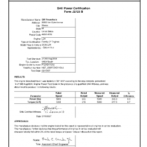 J1349 Certified Power Engine Data for GM LZ4 as used in 2008 Saturn Vue Level 2