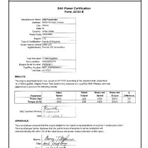 J1349 Certified Power Engine Data for GM LZ9 as used in 2008 Pontiac G6 Convertible – Level 2