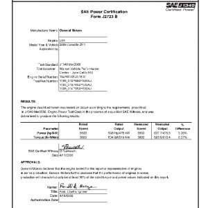 J1349 Certified Power Engine Data for GM as used in 2009 Chevrolet Corvette ZR1 – Level 2