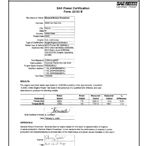 This product includes information on the manufacturer, engine, applications, testing location, certified maximum horsepower, certified maximum torque along with the certified curves of horsepower and torque over a wide range of engine RPM speeds.