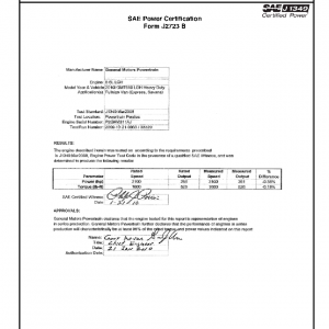 J1349 Certified Power Engine Data for GM LGH as used in 2010i Heavy Duty Fullsize Van (Express/Savana) – Level 2