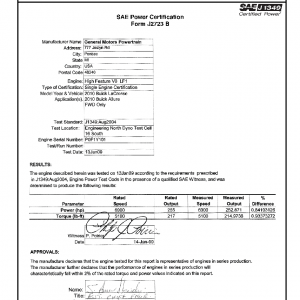 J1349 Certified Power Engine Data for GM High Feature V6 LF1 as used in 2010 Buick LaCrosse and 2010 Buick Allure FWD Only – Level 2