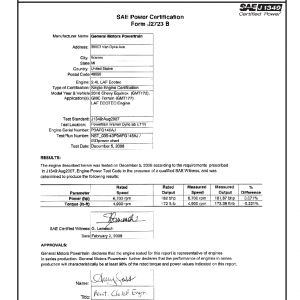 J1349 Certified Power Engine Data for GM LAF Ecotec as used in 2010 Chevy Equinox, GMC Terrain, LAF Ecotec Engine – Level 2