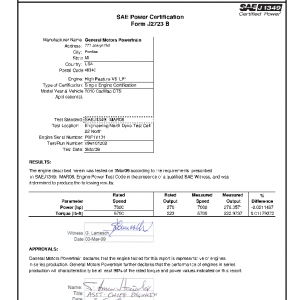 J1349 Certified Power Engine Data for GM High Feature V6 LF1 as used in 2010 Cadillac CTS – Level 2