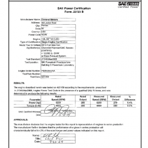 J1349 Certified Power Engine Data for GM L20 as used in 2010 Full Size Van, Chevrolet Express/GMC Savana <10,000 lb. GVW w/ Base Exhaust System – Level 2