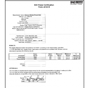 J1349 Certified Power Engine Data for GM LFX Gasoline as used in 2012 Chevrolet Impala – Civilian – Level 2