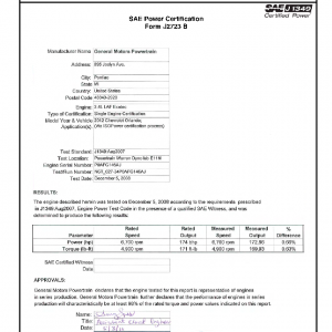 This product includes information on the manufacturer, engine, applications, testing location, certified maximum horsepower, certified maximum torque along with the certified curves of horsepower and torque over a wide range of engine RPM speeds.