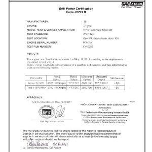 J1349 Certified Power Engine Data for GM U14NET as used in 2012 Chevrolet Sonic MT – Level 2