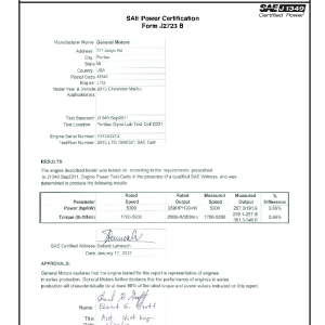 J1349 Certified Power Engine Data for GM LTG as used in 2013 Chevrolet Malibu – Level 2