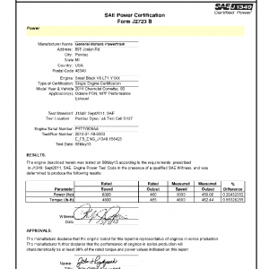 This product includes information on the manufacturer, engine, applications, testing location, certified maximum horsepower, certified maximum torque along with the certified curves of horsepower and torque over a wide range of engine RPM speeds.