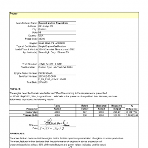 J1349 Certified Power Engine Data for GM Small Block V8 LV3 as used in 2014 Chevrolet Silverado and GMC Sierra Light Duty Ethanol 85 – Level 2