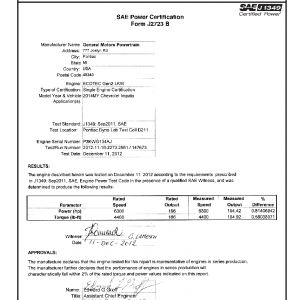 J1349 Certified Power Engine Data for GM LKW as used in 2014MY Chevrolet Impala – Level 2