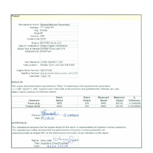 J1349 Certified Power Engine data for Chevrolet ECOTEC Gen 2 LCV as used in 2015MY Chevrolet S-10 E100 Fuel – Level 2