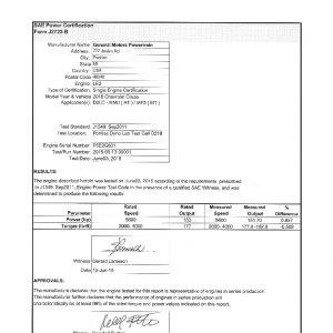 J1349 Certified Power Engine Data for GM LE2 as used in 2016 Chevrolet Cruze – Level 2