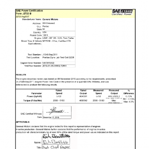 J1349 Certified Power Engine Data for GM LGW as used in 2016 Cadillac CT6 – Level 2