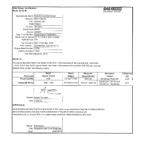 J1349 Certified Power Engine Data for Opel U20SHT as used in the 2019 Carline/Cadillac XT4 – Level 2