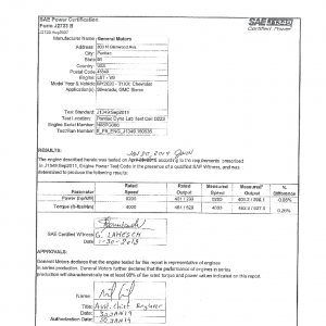 J1349 Certified Power Engine Data for GM L8T as used in 2020 Chevrolet Silverado and GMC Sierra – Level 2