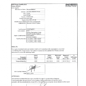 This product includes information on the manufacturer, engine, applications, testing location, certified maximum horsepower, certified maximum torque along with the certified curves of horsepower and torque over a wide range of engine RPM speeds.