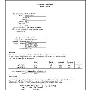 J1349 Certified Power Engine Date for GM L61 as used in 2007 Chevrolet Cobalt